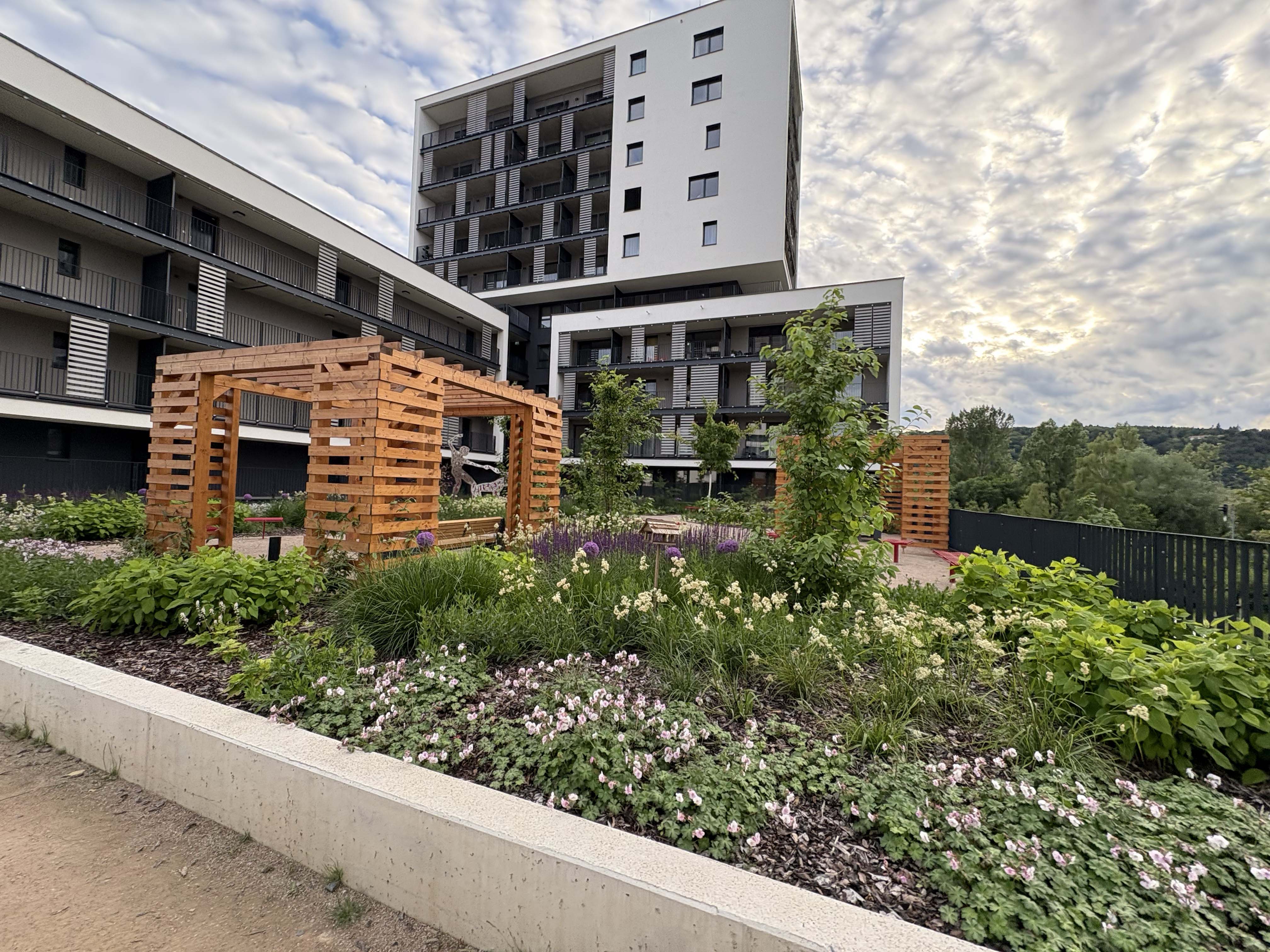 Projekt navazuje na živou atmosféru Modřan. V domě samotném se nachází státní Montessori školka, obchod Tesco a kavárna. V bezprostřední blízkosti je škola, restaurace, sportoviště, dětská hřiště, posilovna, kosmetický salon, kadeřnictví/barber. Lokalitu obklopuje příroda vinice, lesní čtvrť i lesopark Hodkovičky. Pro sportovní nadšence je k dispozici devítijamkové golfové hřiště, minigolf, fotbalové hřiště, lanové centrum, tenisové kurty, badmintonová hala a oblíbená cyklo- a inline stezka podél Vltavy.